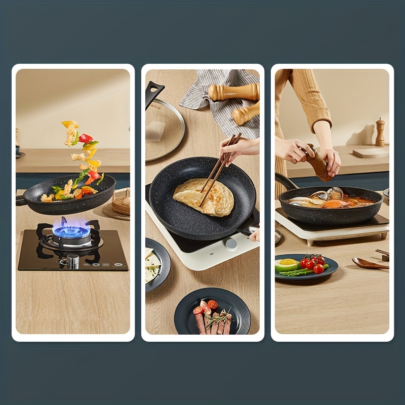 The frying pan is compatible with all cooktops, including induction. Its durable build withstands daily cooking, high temperatures, and frequent washing while maintaining strong performance. Lightweight yet sturdy, this skillet is ideal for fast weekday meals, student cooking, and professional kitchen tasks.