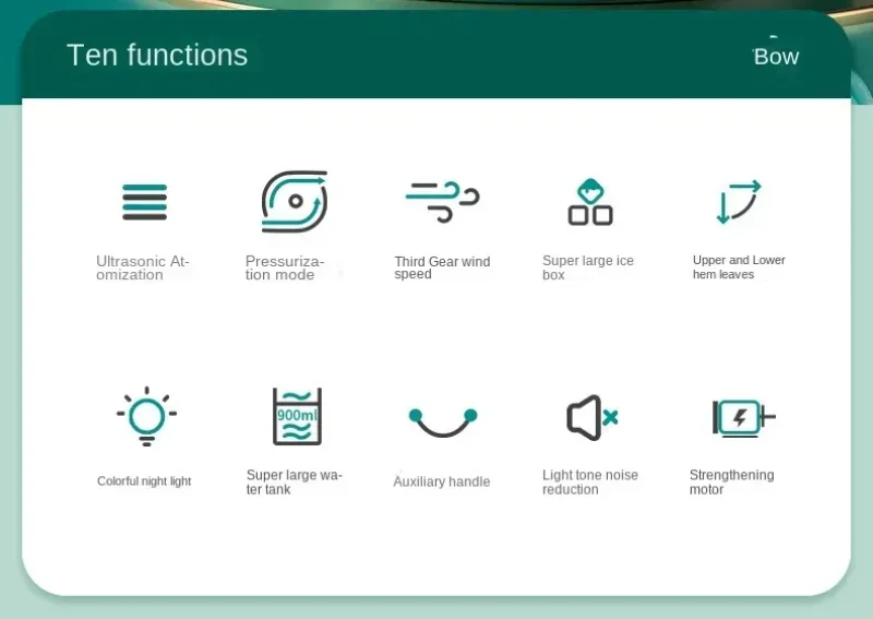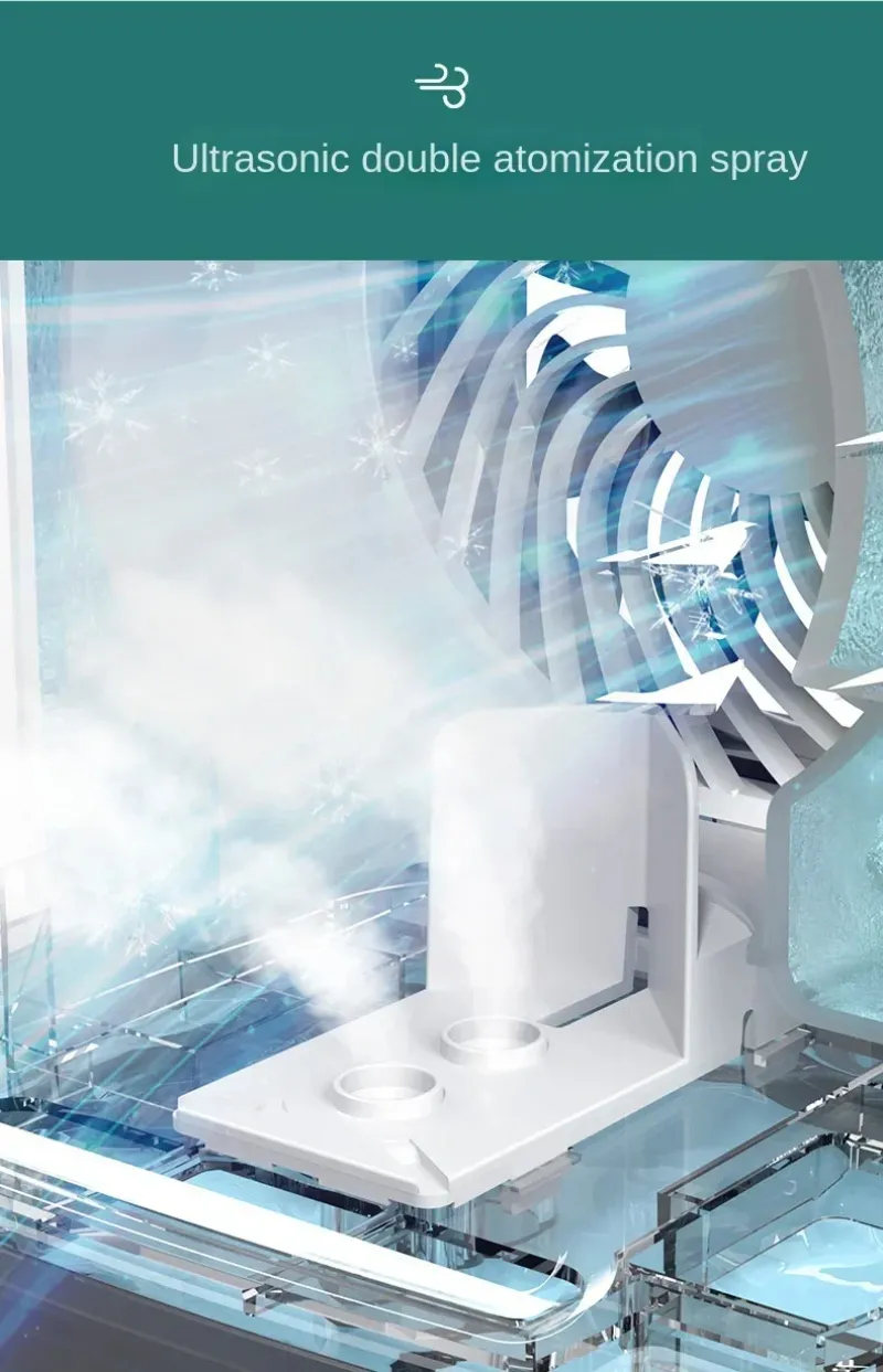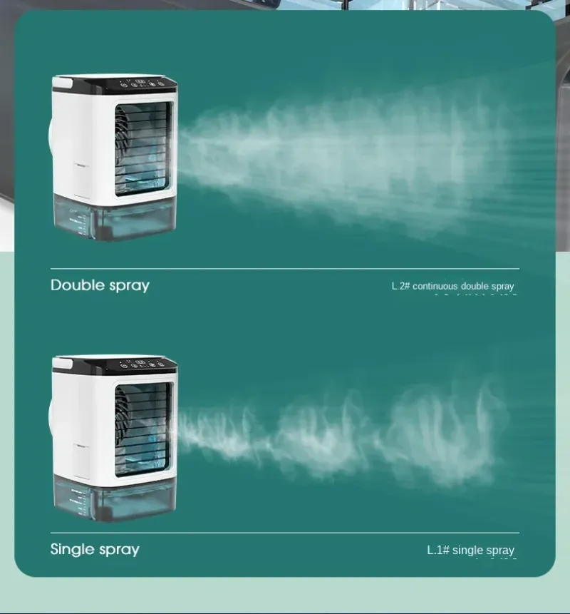 1. Dual spray cooling: The air conditioner fan has a dual spray cooling feature, which effectively lowers the temperature in the room by