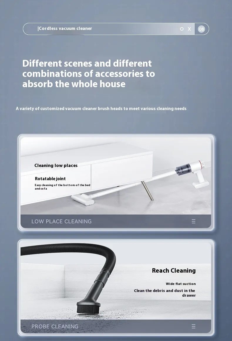 Its long-lasting rechargeable battery supports extended cleaning sessions, while the compact and lightweight design makes it easy to maneuver across floors, carpets, sofas, and even car interiors.