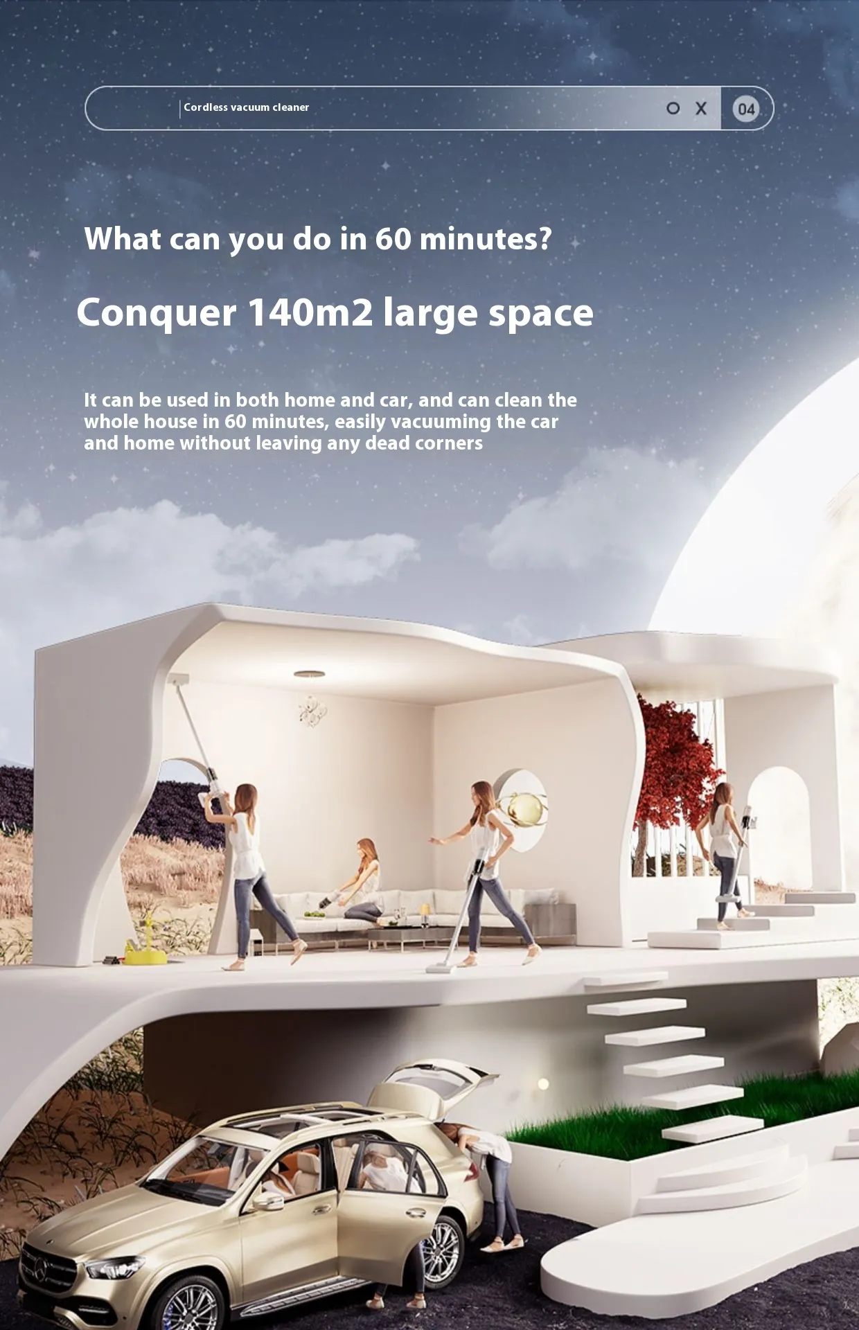 Cordless Convenience – No cords, no hassle. Move freely around your home or car without being restricted by outlets.