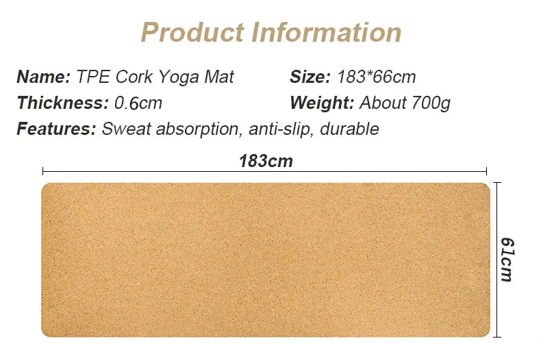 Specifications: cork+TPE183*61*6mm, cork+rubber 183*66*4mm (cm)