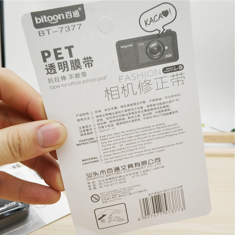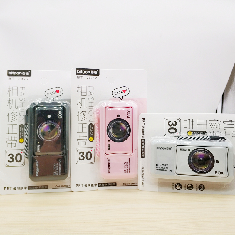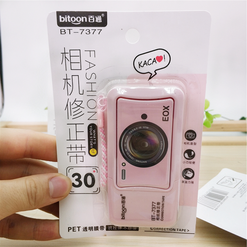 - Fun, cartoon camera design – A playful and unique take on standard correction tapes.