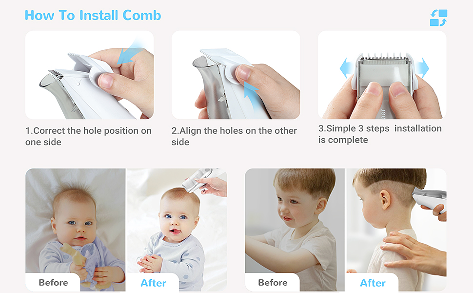 - Corte de cabello seguro: Cuenta con una tecnología patentada de cabezal de corte de 28 dientes y un diseño de esquinas en forma de R, lo que garantiza un corte de cabello seguro sin tirar del cabello ni rascarse la piel; Ideal para el cabello suave de los niños