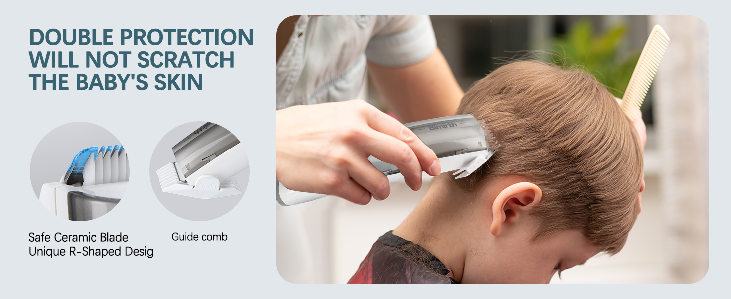 - 【Diseño de dientes en "R"】 Cuchilla de cerámica con un exclusivo diseño de bisel en forma de R que no raya la piel del bebé ni tira del cabello.