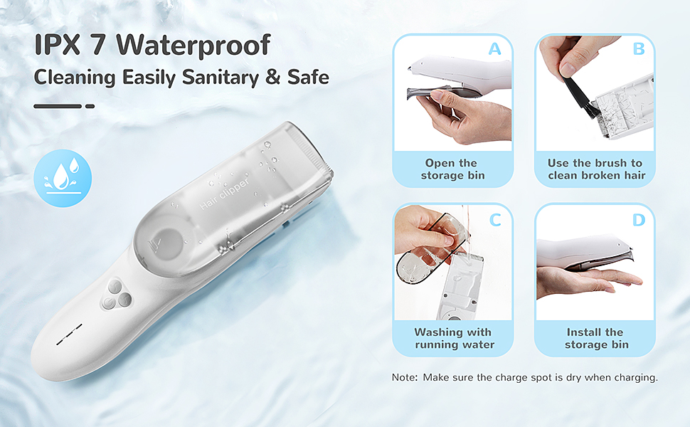 - Totalmente lavable: Todo el cuerpo del recortador de cabello para bebés LUSN es resistente al agua IPX-7, lo que permite una fácil limpieza con agua corriente después de cada uso