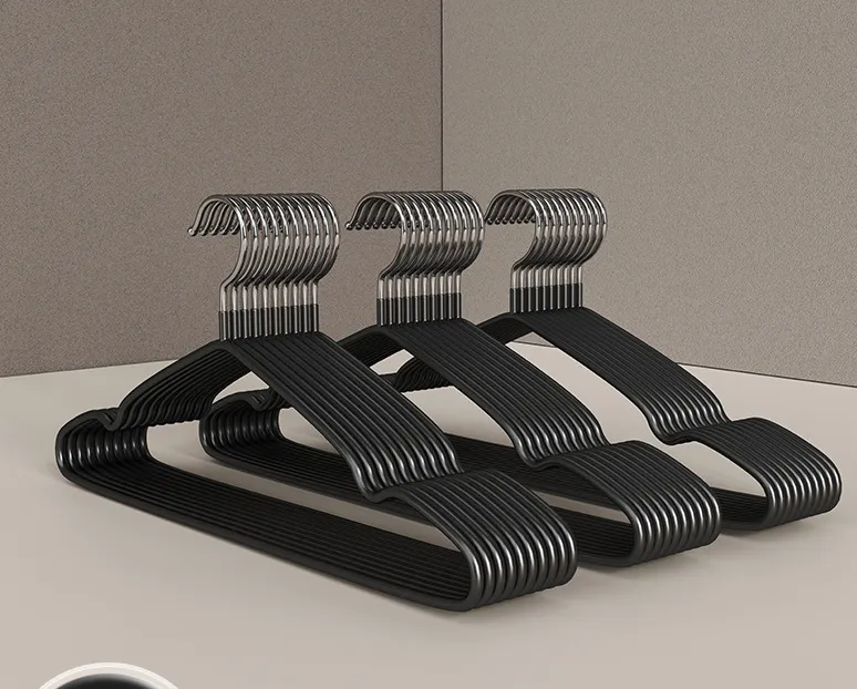 Covered coat hangers are a versatile addition to any closet, designed with a protective, soft layer of fabric, velvet, or foam that covers the frame of a traditional hanger. The cover creates a gentle surface that prevents clothes from slipping off while maintaining their shape. These hangers are ideal for delicate garments like suits, dresses, and blouses that need extra care during storage. Available in a variety of materials, including velvet, fabric, and foam, covered coat hangers help preserve the shape and structure of garments while offering excellent grip and anti‑slip qualities.