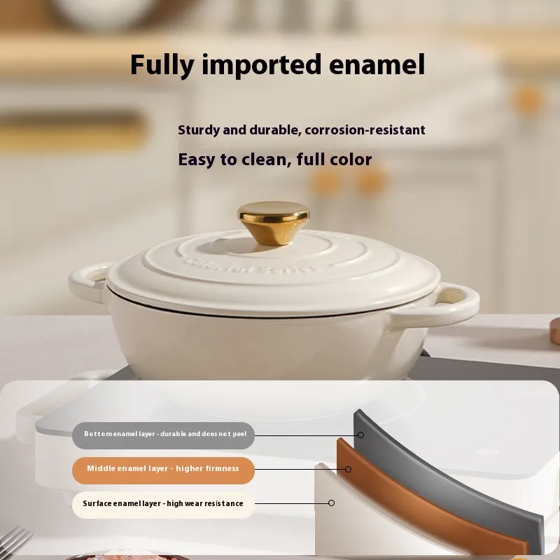 Cream White Cast Iron is a versatile, durable, and visually appealing cookware solution designed to meet the needs of modern kitchens. Its superior heat retention, even cooking performance, and elegant design make it an excellent choice for both everyday meals and special occasions.