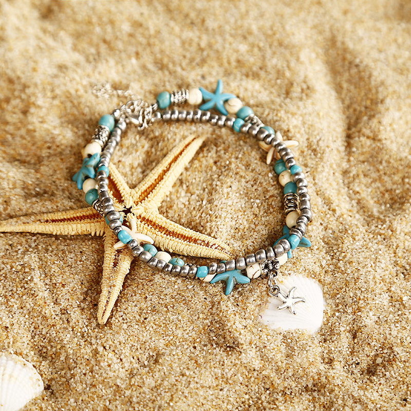 Creative Personality Fashion Accessories Double Starfish Rice Bead Jewelry Yoga Beach Jewelry Anklet