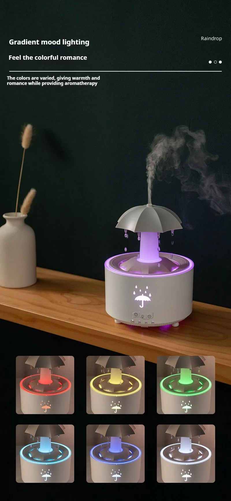 ✔The rain humidifier with 7 colors of light, which can be used as a night light to light up the colorful night.
