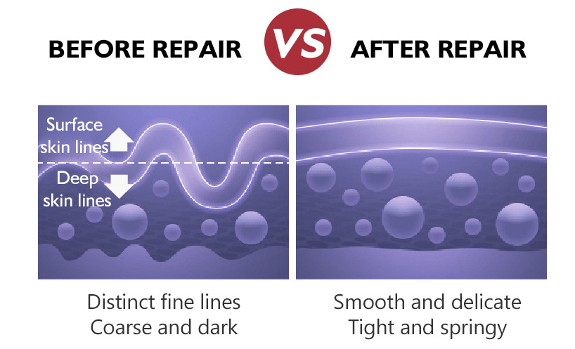 - Hidrata, rellena y reafirma la piel, reduciendo la formación de líneas de expresión y arrugas.