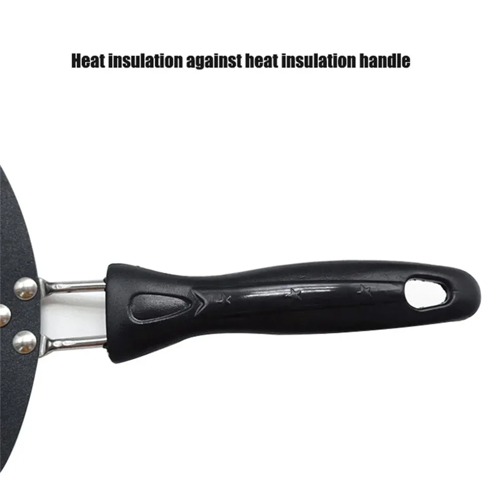The handle of the crepe pan is designed for a comfortable and secure grip, allowing you to move the pan easily and control the cooking process.