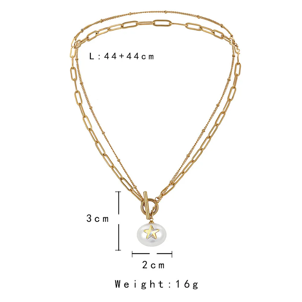 In conclusion, the Cross-border European And American Stainless Steel Round Pearl Star Necklace is an exceptional piece of jewelry that combines timeless elegance with modern flair. Whether you're buying it for yourself or as a thoughtful gift for someone special, this necklace will surely stand the test of time. Its durable materials, stylish design, and versatility make it an essential addition to any jewelry collection. Don't miss out on adding this beautiful, high-quality accessory to your cart today.