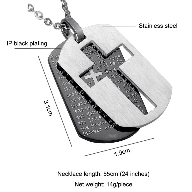 The cross is one of the most recognized symbols of faith, representing love, sacrifice, and hope. The Cross Dog Tag Pendant combines the cross with the strong, military-inspired dog tag design, symbolizing both spiritual strength and resilience. Wearing this pendant serves as a reminder of your faith, while also offering a sense of protection and courage in difficult times.