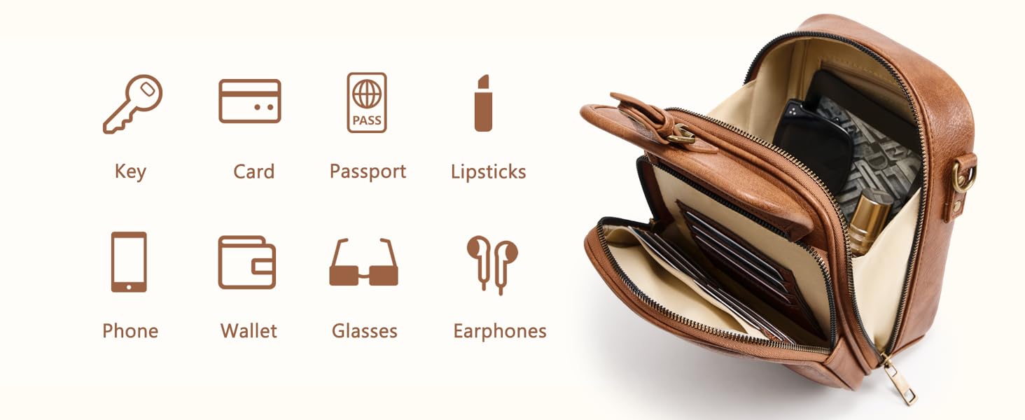 - Multiple Compartments for Organized Storage: Includes 2 zippered pockets, 1 back pocket, 2 insert pockets, 10 card slots and a key fob, providing plenty of space to keep your wallet, phone, keys, sunglasses, and other essentials neatly organized and easily accessible