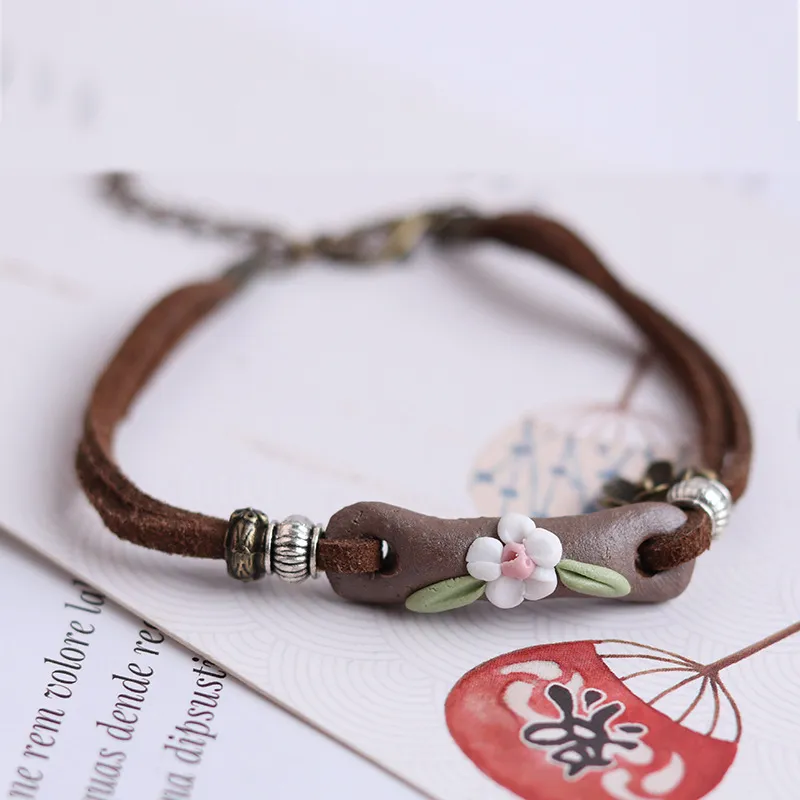 Introducing the Crumpled Chrysanthemum Bracelet with Flower Heart Stone, a beautiful and one-of-a-kind piece of scenic souvenir ceramic jewelry that blends nature-inspired design with artisan craftsmanship. This bracelet features a charming chrysanthemum flower with a flower heart stone, intricately woven into a bracelet that reflects both beauty and the essence of the natural world. Whether you’re looking for a meaningful souvenir or a stylish addition to your jewelry collection, this bracelet will add a unique touch to any outfit.The chrysanthemum flower design represents longevity, beauty, and optimism, making it a perfect symbol for those seeking positivity and growth. The flower heart stone adds a personal touch to the piece, bringing together both the charm of nature and the elegance of fine craftsmanship. Woven with care and precision, this ceramic bracelet is a testament to the artistry of souvenir jewelry and the craftsmanship of woven accessories.