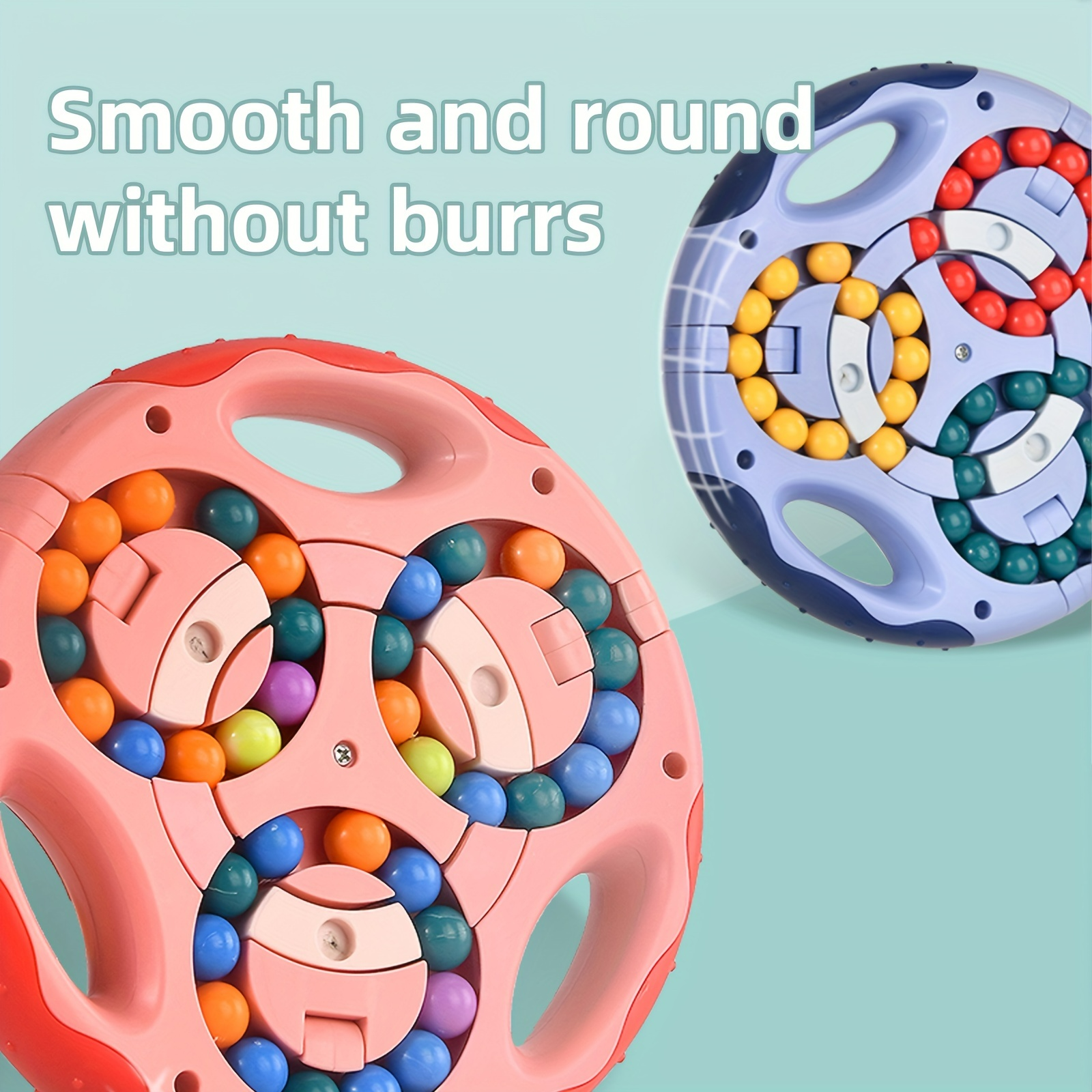 - (Diseño antideslizante) Ambos lados de este colorido juguete giratorio de bolas están diseñados con partículas salientes que aumentan la fricción con la mano y masajean las manos de los niños.