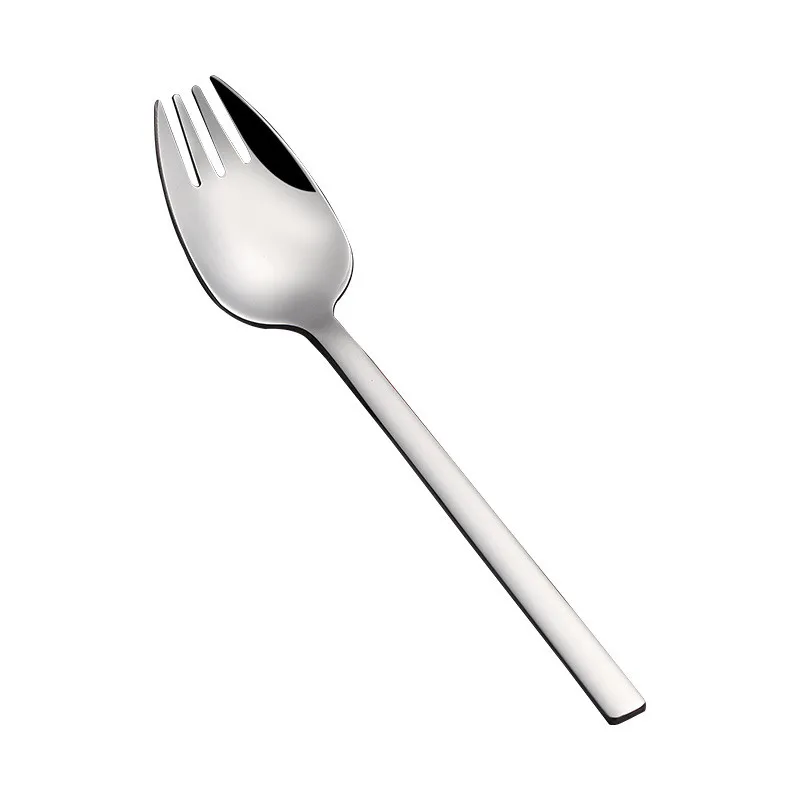 Características: cuchillo y tenedor integrados, diseño engrosado, pulido espejo, duradero y fácil de limpiar.