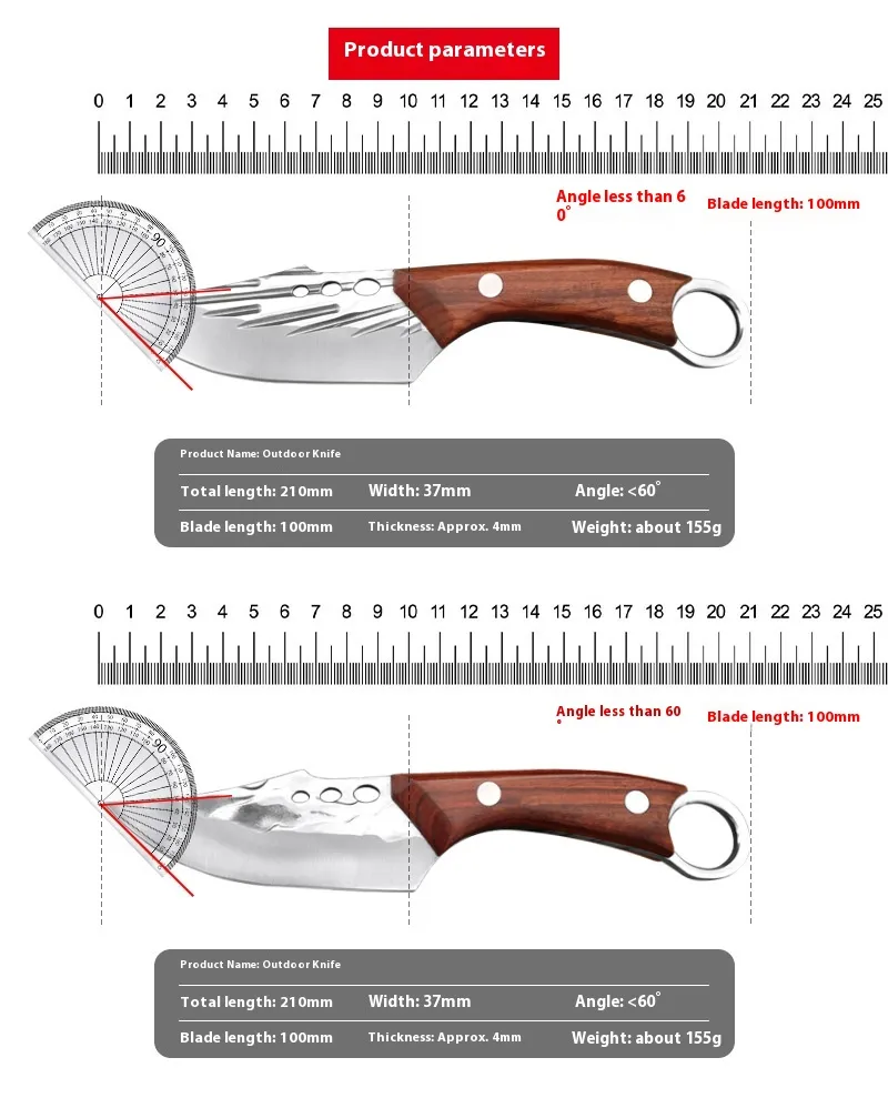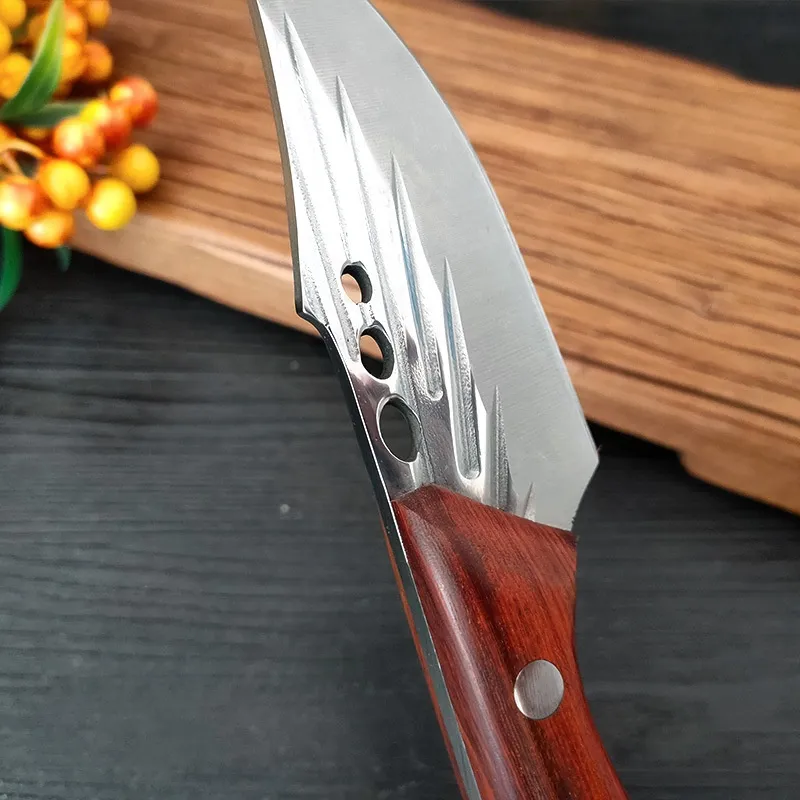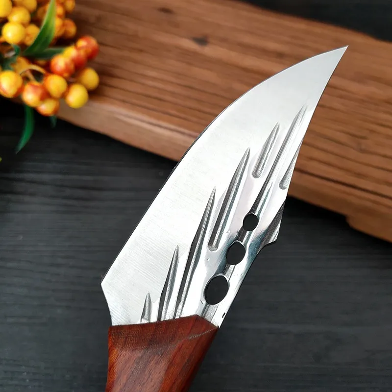 - Hoja de acero inoxidable forjada a mano: Fuerte, afilada y resistente al óxido y la corrosión, lo que garantiza un rendimiento duradero.