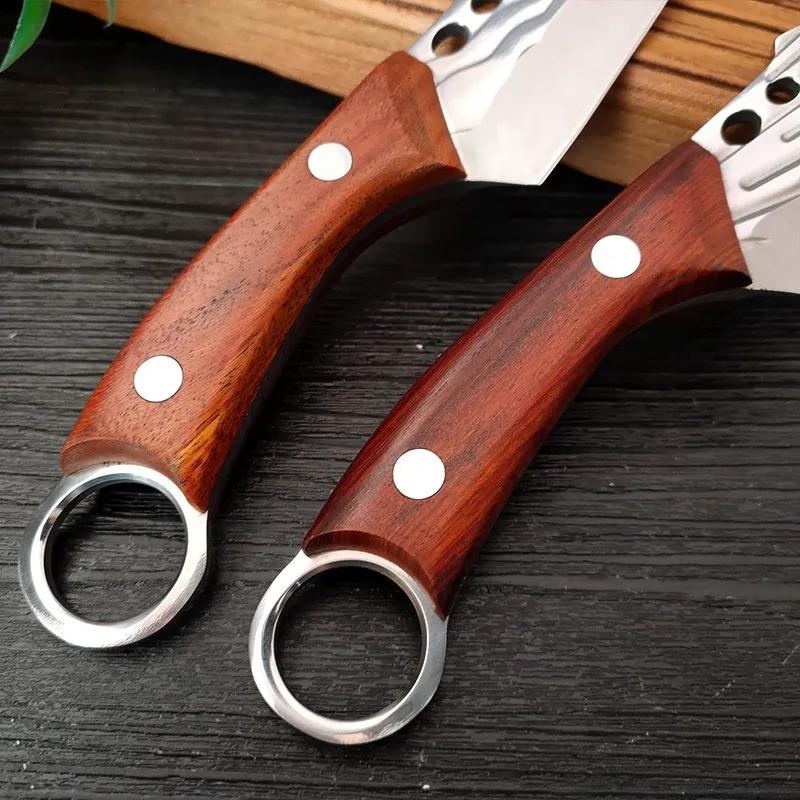 Cuchillo con mango de anillo de acero inoxidable forjado a mano