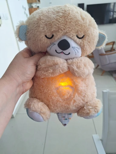 breathing baby bear, baby soothing bear, plush breathing toy, baby sleep aid, heartbeat teddy bear, calming bear for infants, baby sleep soother, plush bear with breathing motion, infant sleep companion, baby relaxation toy