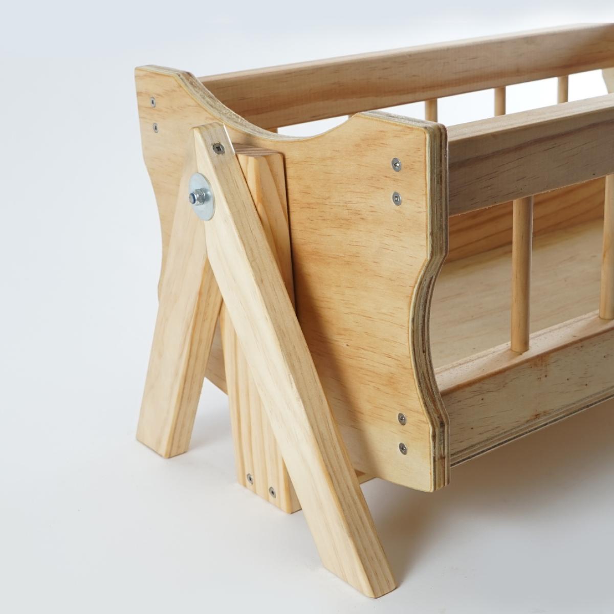 Arrulla a tu querida muñeca con nuestra auténtica cuna mecedora de lado a lado. Conocida en guarderías de toda Nueva Zelanda,