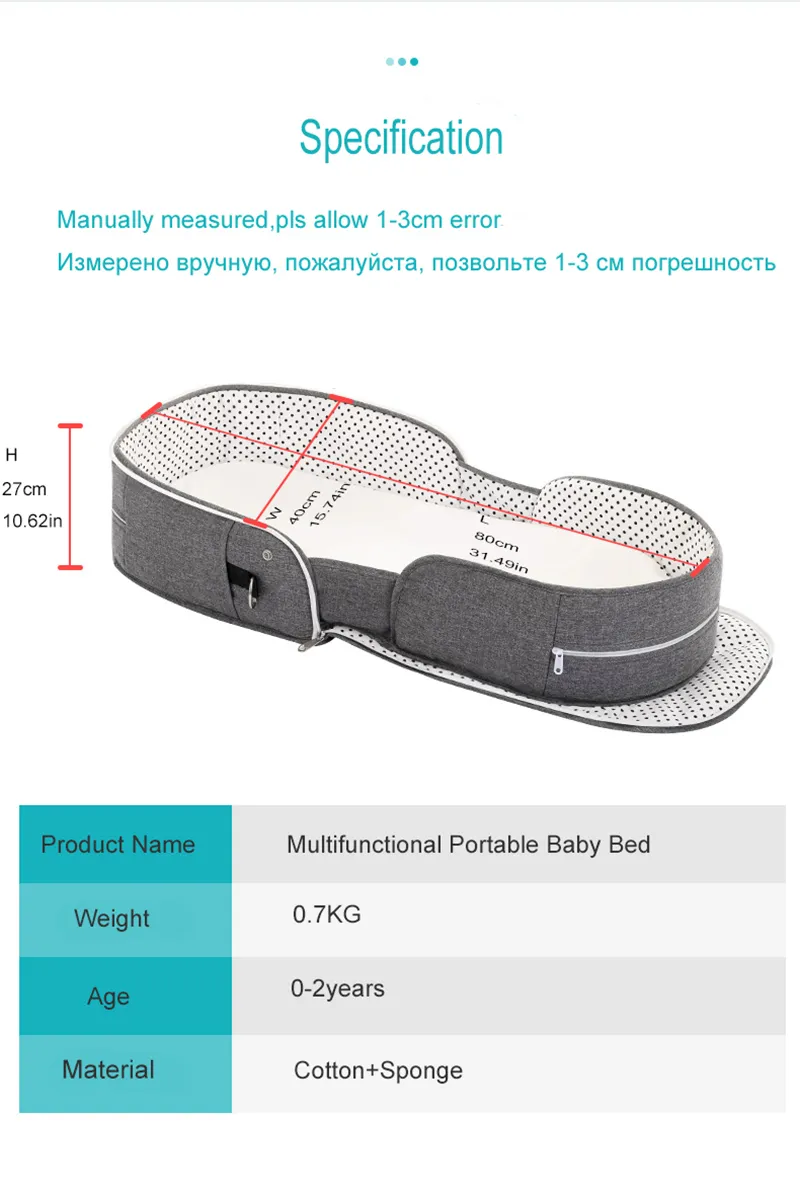 Tanto la cuna como la bolsa de mamá son ligeras y cómodas de llevar. Las correas ajustables del bolso de mamá facilitan su transporte, mientras que la cuna portátil está diseñada para ser fácil de llevar, haciendo que viajar con un bebé sea más sencillo que nunca.