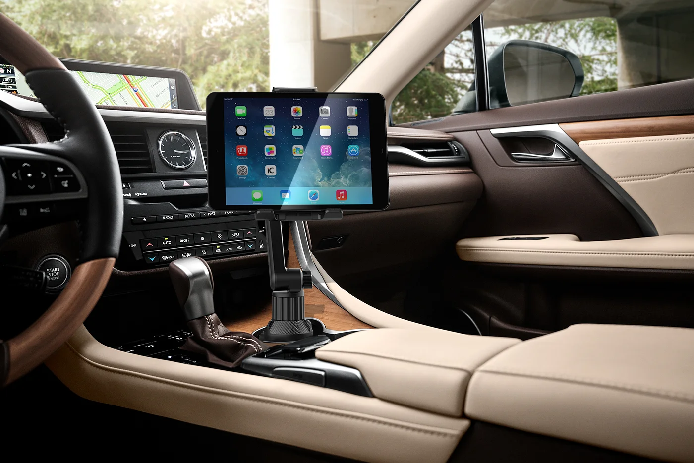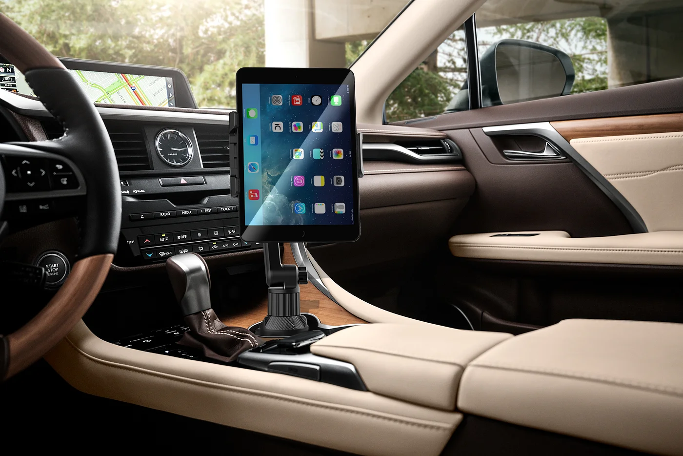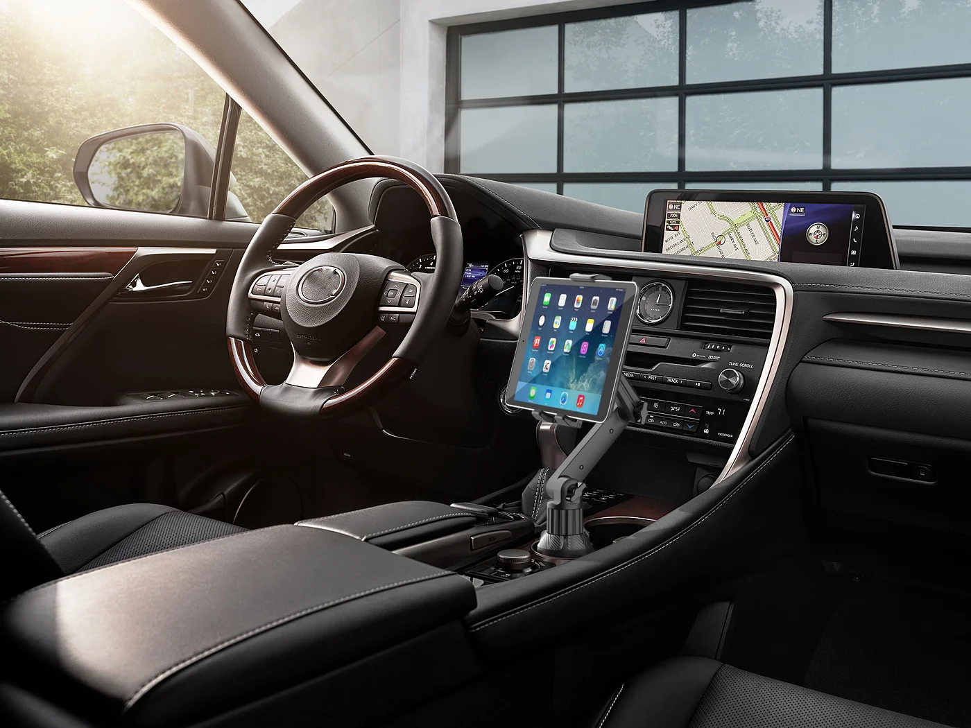 • Secure Hold:El soporte para tableta proporciona una sujeción segura para su tableta, asegurando que permanezca en su lugar mientras conduce.