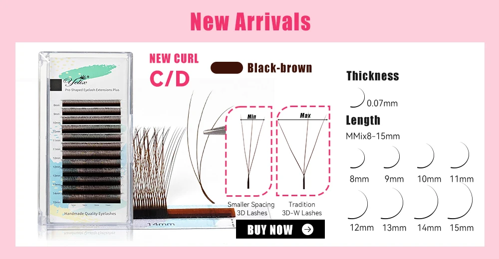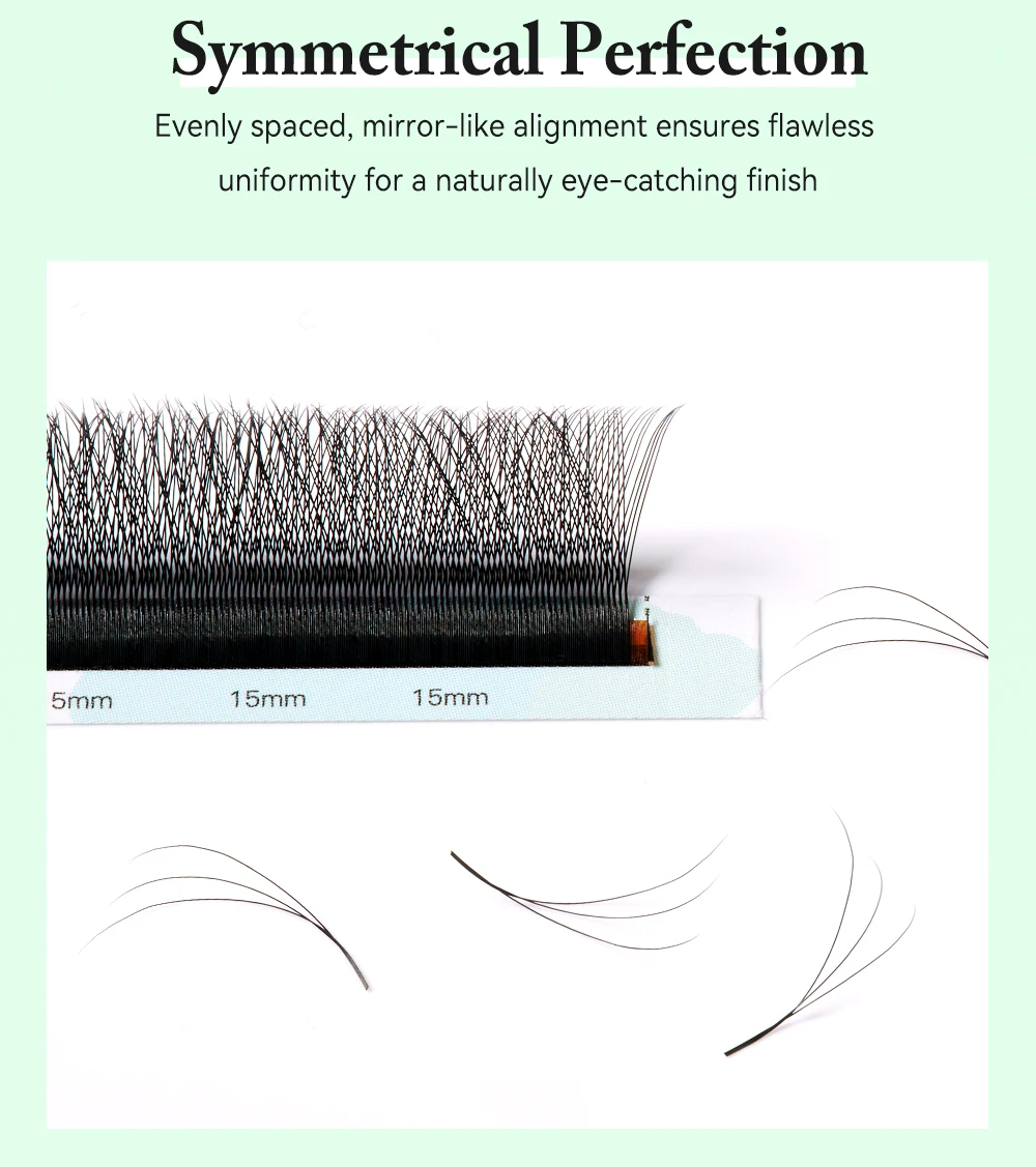 1. Small spacing 3D eyelashes. Compared with traditional 3D W eyelashes, this eyelash has a smaller opening and smoother lines.Adopting a compact arrangement design, the eyelash spacing is reduced and evenly distributed, resulting in a denser eyelash effect after use