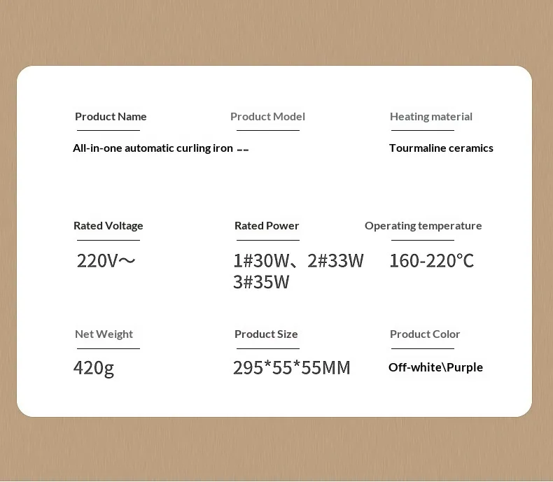 Power: Pink [32mm + 25mm + straightening comb + timer with phoenix-sound alert], Purple [32mm + 25mm + straightening comb + timer with