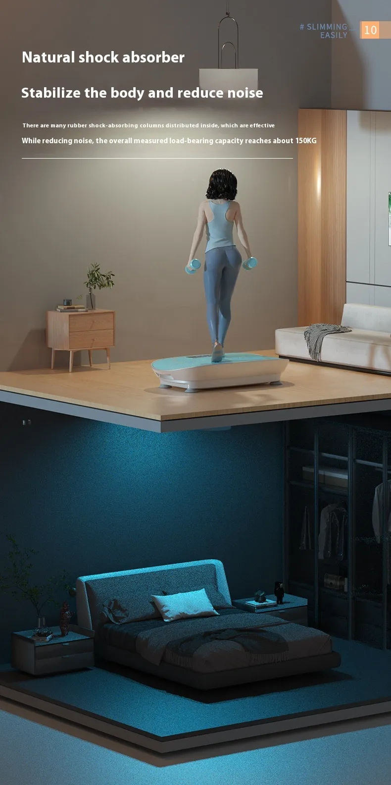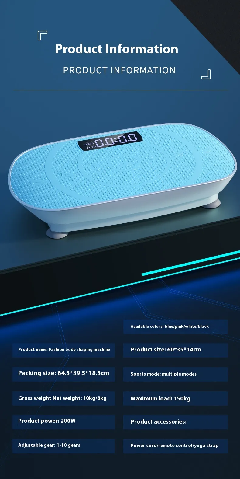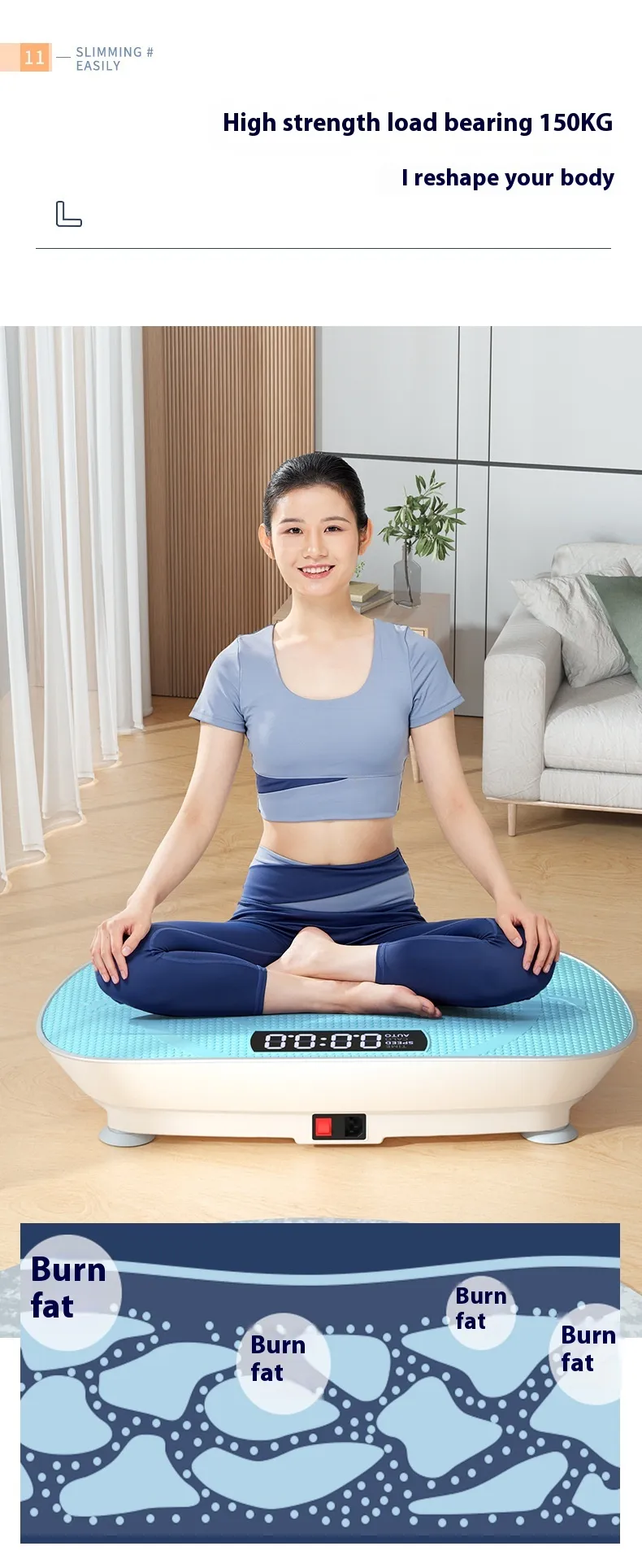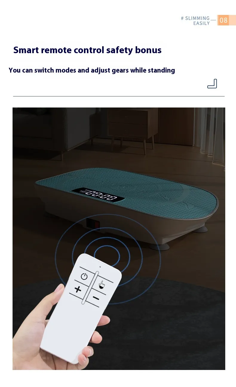 Designed for simplicity, it includes easy-to-use controls that let beginners select appropriate vibration intensity levels. Whether used for short warm-up routines, balance exercises, or gentle toning sessions, this vibration plate supports a variety of low-impact movements.