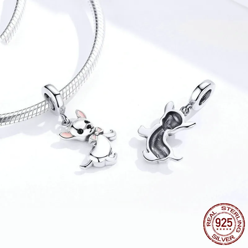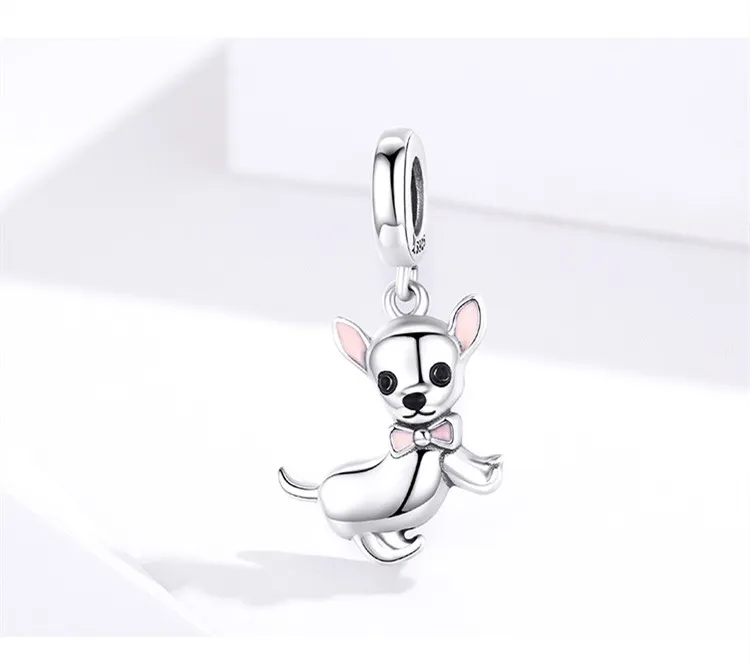 Cute Animal Chihuahua S925 Sterling Silver Pendant Fashion DIY Beaded Bracelet Necklace Silver Accessories SCC1317