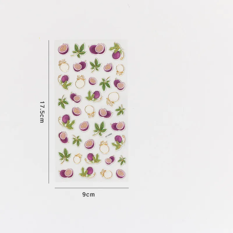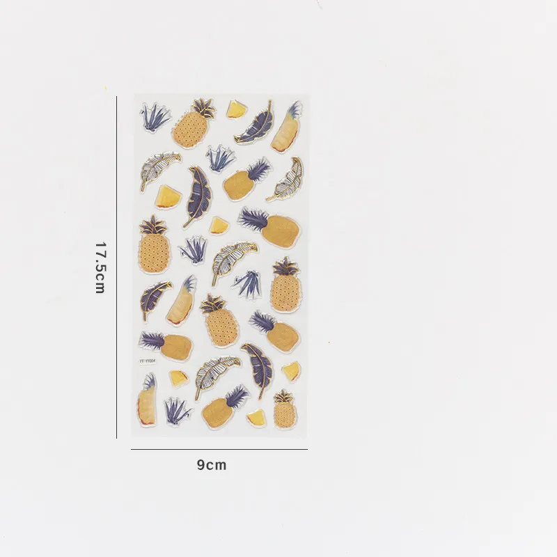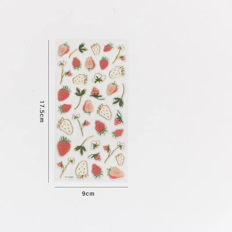 In conclusion, the Cute DIY Fruit Bronzing Sticker is a unique and versatile decorative tool for anyone who loves to add personality, style, and elegance to their creative work. With its adorable fruit designs and bronzing effect, this sticker set is perfect for scrapbooking, journaling, and DIY crafts. Whether you're personalizing notebooks, decorating planners, or creating handmade cards, these stickers offer a fun yet sophisticated way to enhance your projects. Their durable construction and self-adhesive design make them easy to use, ensuring a smooth and enjoyable crafting experience.