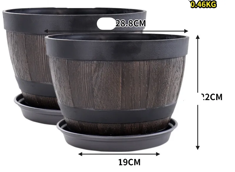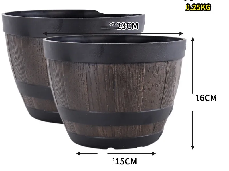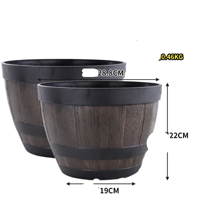 Universal resin imitation wine barrel retro old iron tree resin planting flowers planting trees creative plastic green radish flower pot