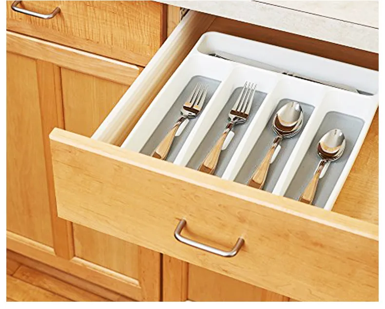 storage solution, drawer inserts for cutlery, silverware tray, kitchen drawer organizer, adjustable cutlery organizer, non-slip drawer
