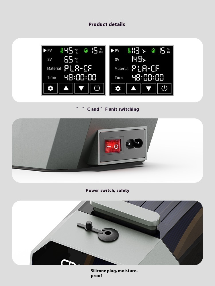 The CX 3D Printer Drying Box is crafted with high-quality materials and advanced technology, ensuring reliable performance and durability.