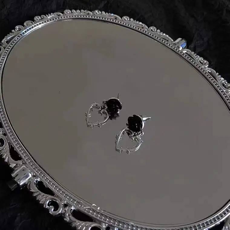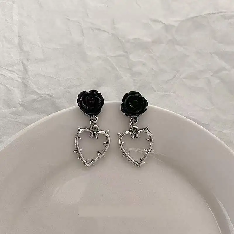 Dark Vintage Thorns Rose Love Earrings