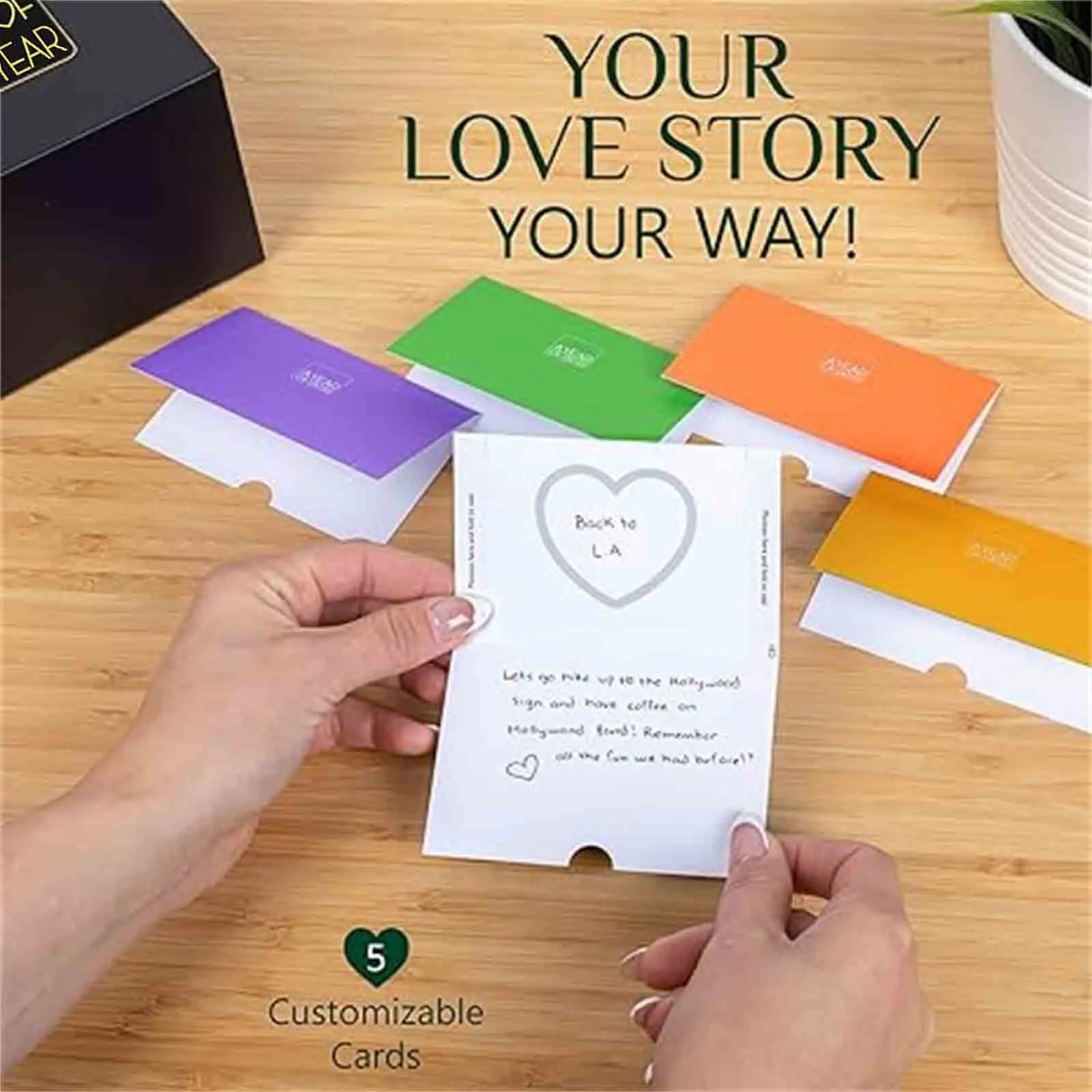 Colorful Envelopes: The six bright and vibrant envelopes hold unique date ideas, ensuring that each month has something exciting to look forward to.