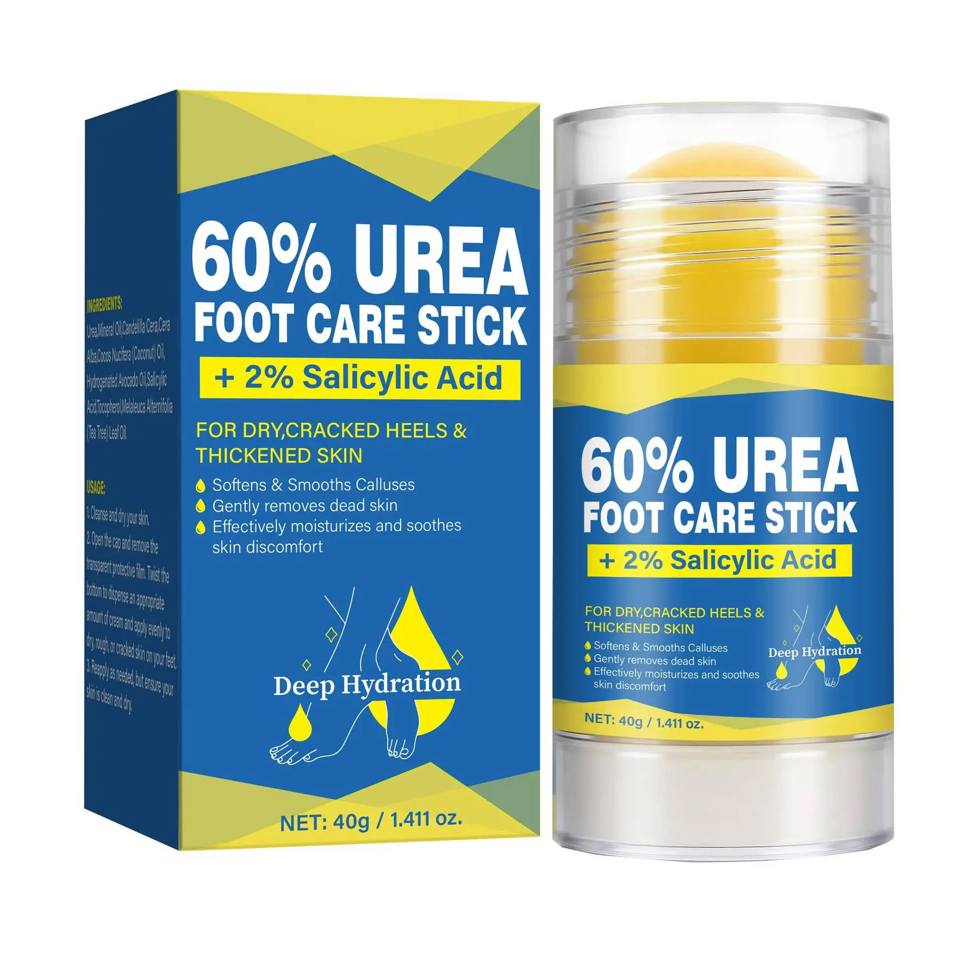 Whether you live in a dry climate, lead an active lifestyle that exposes your skin to friction and stress, or simply want to elevate your daily skincare routine with a targeted therapeutic product, Deep Hydration Urea Cream Stick plus 2% Salicyl provides a balanced approach. Its gentle yet effective formula helps remove dead skin, encourage cell turnover, and reinforce your skin’s natural moisture barrier — making transformations visible within days.