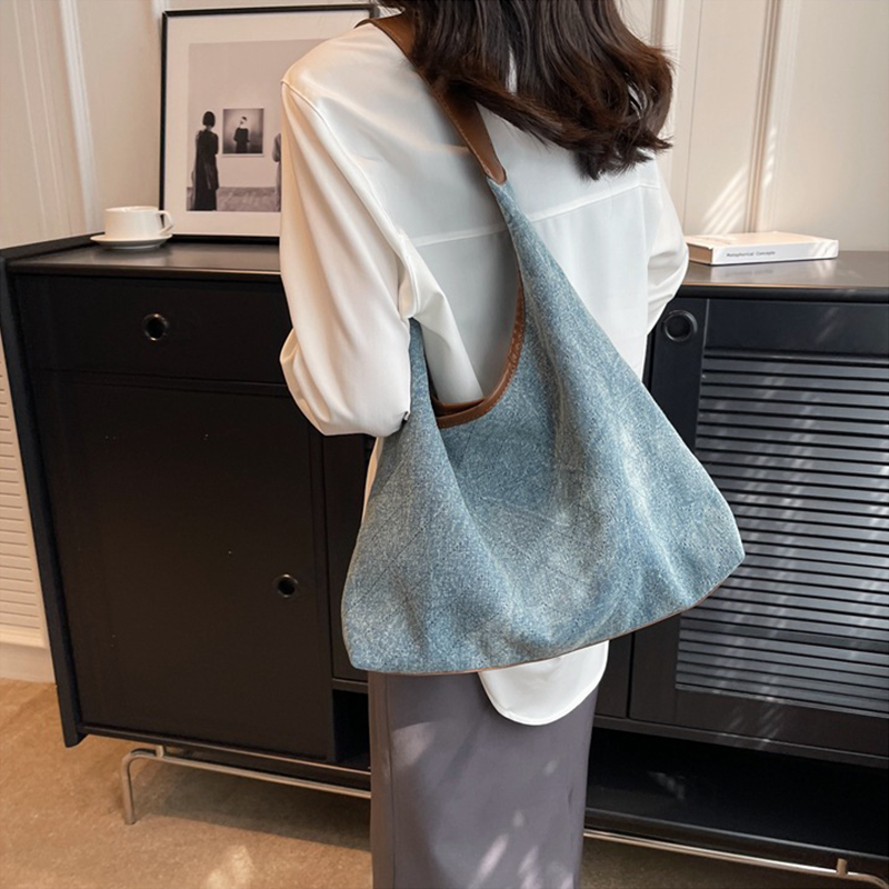 Denim Canvas Bucket Bag Fashion Large Capacity Shoulder Bags For Women Tote Handbag Female Shopping Bags