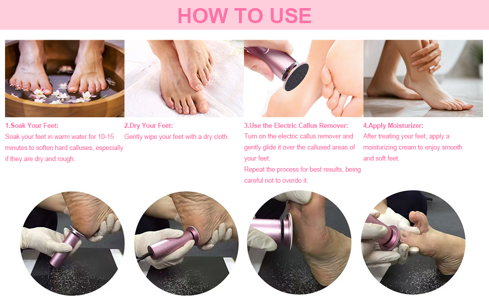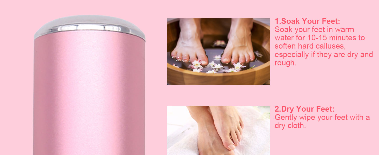 - Before using, Please soak your feet in the warm water for 10-20 minutes. To soften.