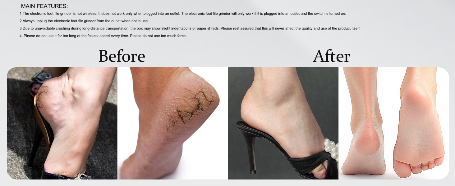 - Before using, Please soak your feet in the warm water for 10-20 minutes. To soften.