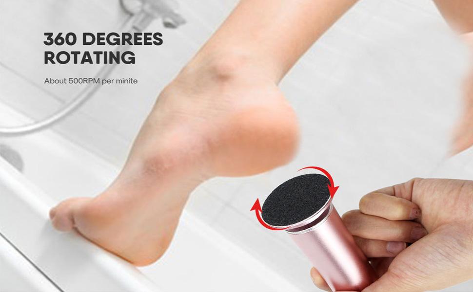 - 1. With a powerful motor, it can rotate 360 degrees to remove calluses.