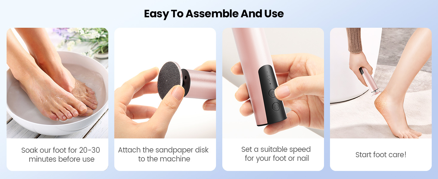 - Apply suitable pressure when using.to ensure the machine can rotate normally, so that the machine can effectively remove callus from the feet.