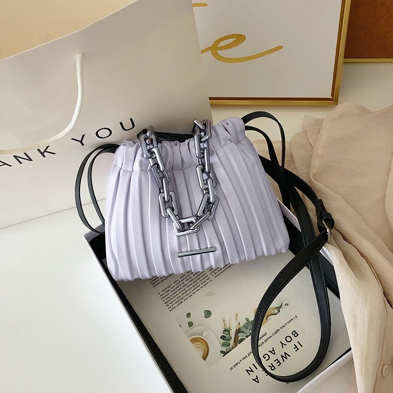 The Designer Drawstring Bucket Bag with Thick Chain is versatile enough for any occasion, whether you’re heading to the office, out shopping, or attending a night out. The combination of the casual bucket shape and bold chain strap makes it a unique accessory that’s both trendy and functional. Its spacious interior ensures you can carry all your essentials, making it ideal for women on the go.