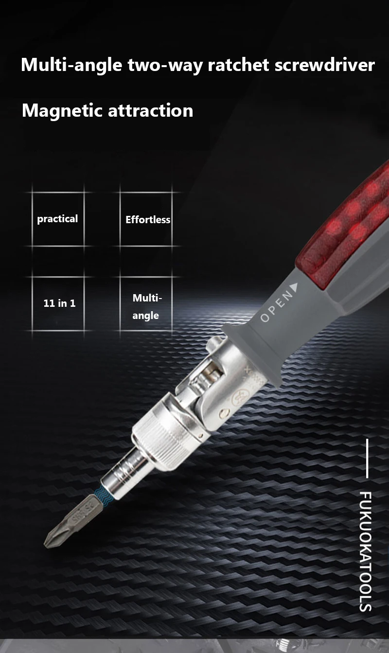 Mejore su kit de herramientas con el revolucionario destornillador de trinquete universal de doble articulación, diseñado para una flexibilidad superior y una eficiencia inigualable. Esta innovadora herramienta está diseñada para que su trabajo sea más fluido y rápido, tanto si es un profesional como un aficionado al bricolaje.