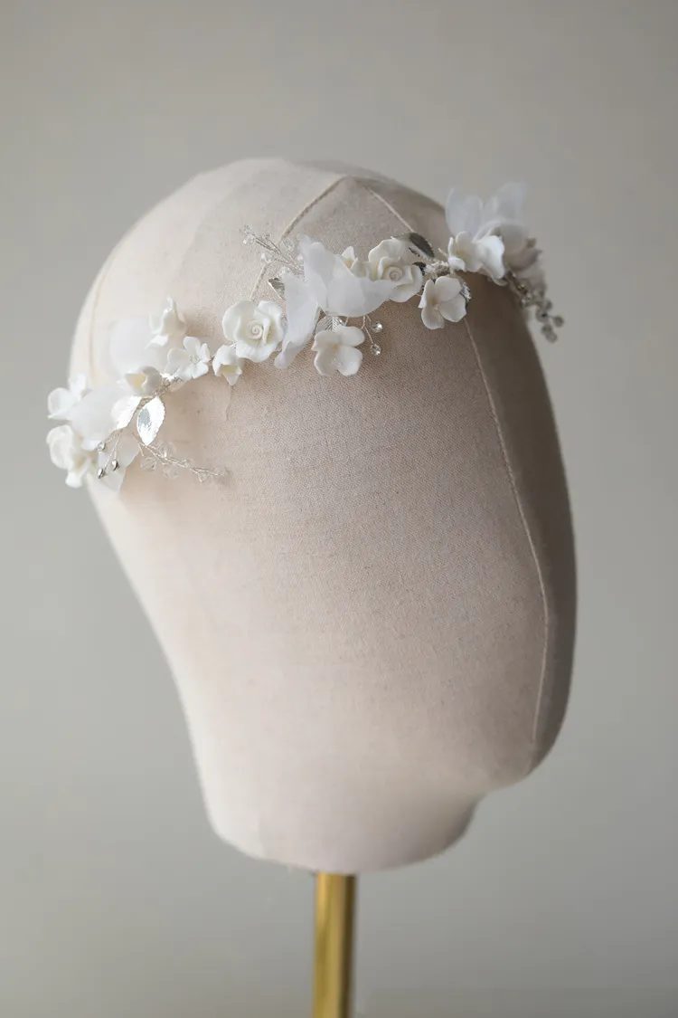 Las delicadas flores de cerámica hacen de esta diadema una opción ideal para bodas, despedidas de soltera o cualquier ocasión especial en la que quieras lucir lo mejor posible.