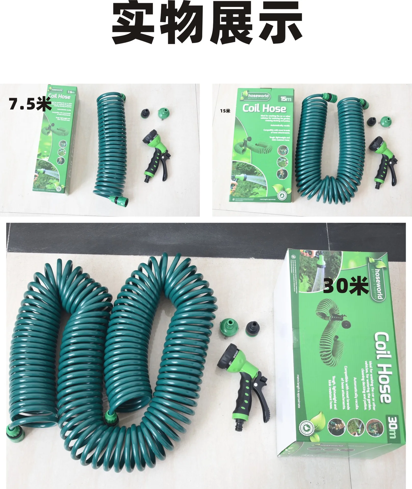 Diameter: 1/2'', Lengh: 25ft - 15M/30M Garden Spring hose Telescopic Water Pipe Car Washing hose Gardening Retractable Coil Magic Flexible hose spray