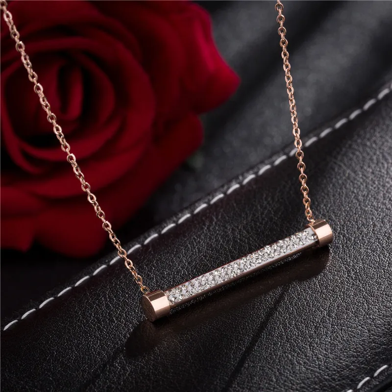 Diamond Word Necklace Fashion Simple Titanium Steel Rose Gold Plated