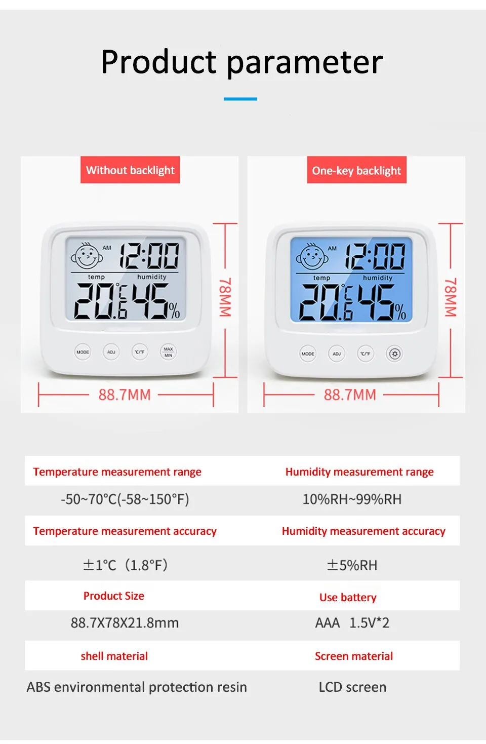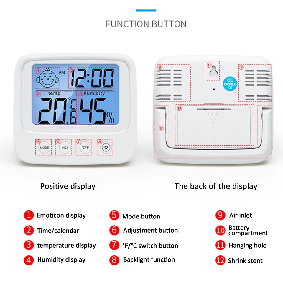 4. Large liquid crystal display The humidity thermometer integrates a liquid crystal display and a clear large digital indicator, and