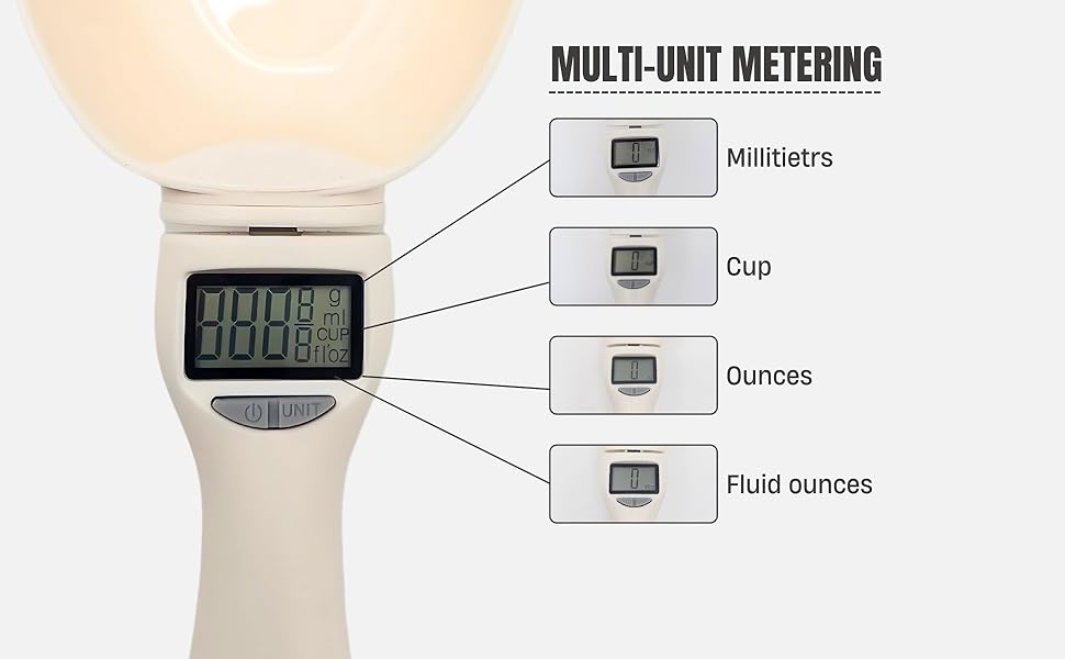 - VERSATILE MEASUREMENT UNITS: Switch seamlessly between g, ml, cup, fl. oz, and oz with the UNIT button, making it perfect for all your cooking, baking, and pet feeding needs